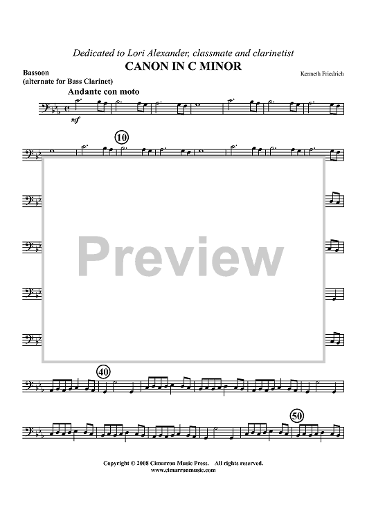 "Canon in C Minor - Bass Clarinet (opt. Bassoon)" Sheet Music by Ken Friedrich
