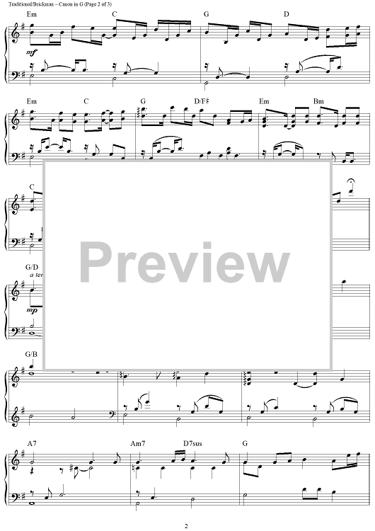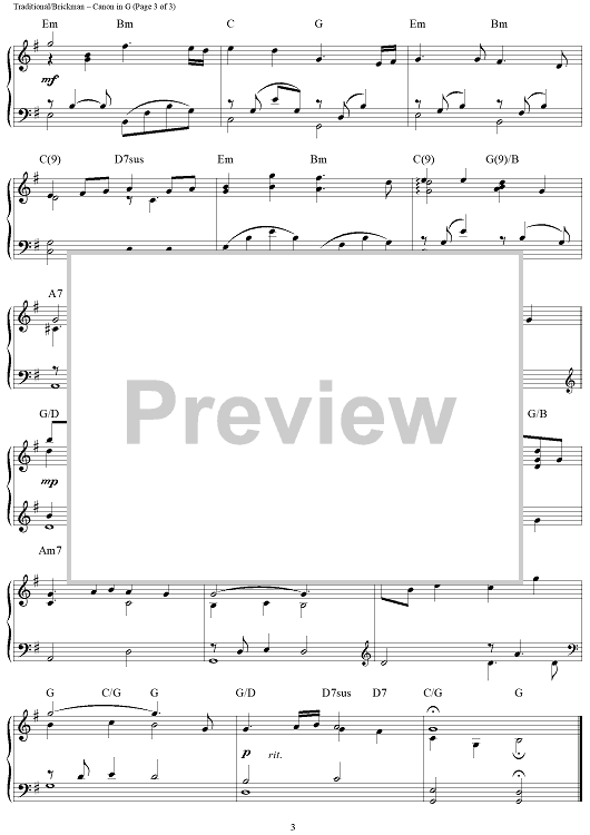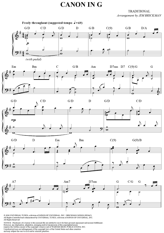 Digital Sheet Music for Canon in G by Jim Brickman, Traditional scored for Piano Solo; id:359325