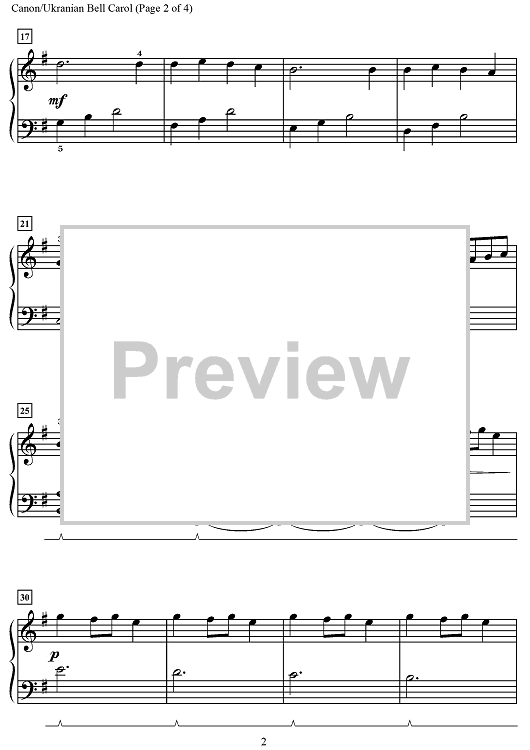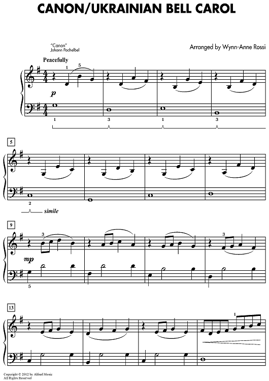 Digital Sheet Music for Canon / Ukrainian Bell Carol by Wynn-Anne Rossi scored for Piano; id:469677