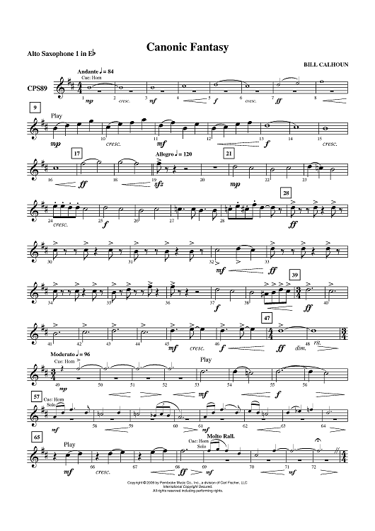 "Canonic Fantasy - Alto Sax 1" Sheet Music by Bill Calhoun