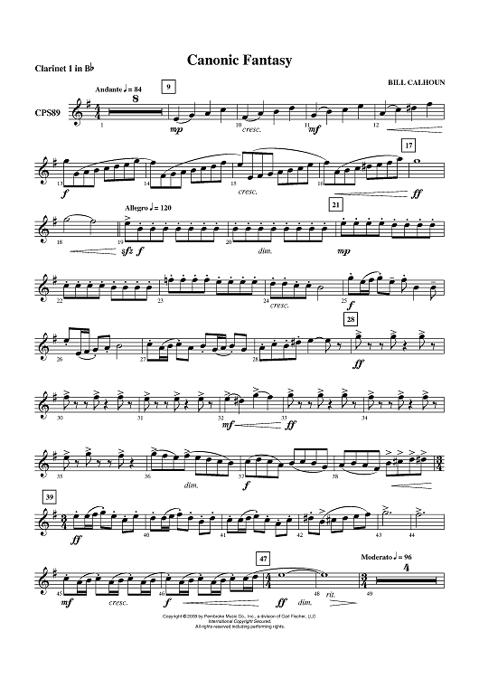 "Canonic Fantasy - Clarinet 1 in B-flat" Sheet Music by Bill Calhoun