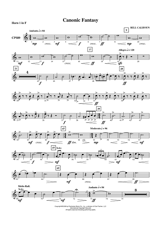 Digital Sheet Music for Canonic Fantasy - Horn 1 in F by Bill Calhoun scored for Concert Band; id:405651
