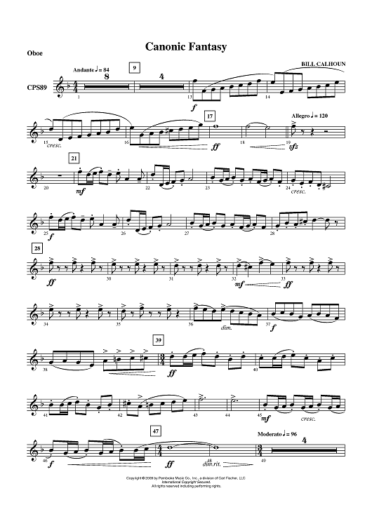 "Canonic Fantasy - Oboe" Sheet Music by Bill Calhoun