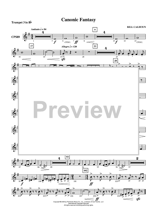 Digital Sheet Music for Canonic Fantasy - Trumpet 3 in B-flat by Bill Calhoun scored for Concert Band; id:405662