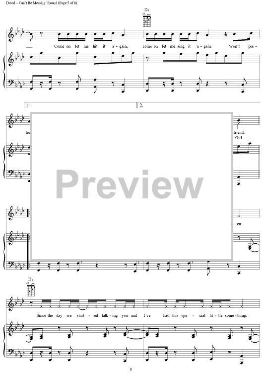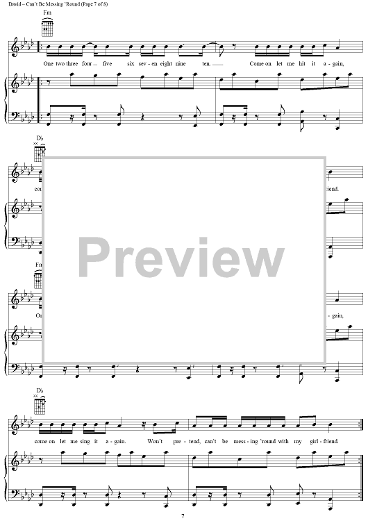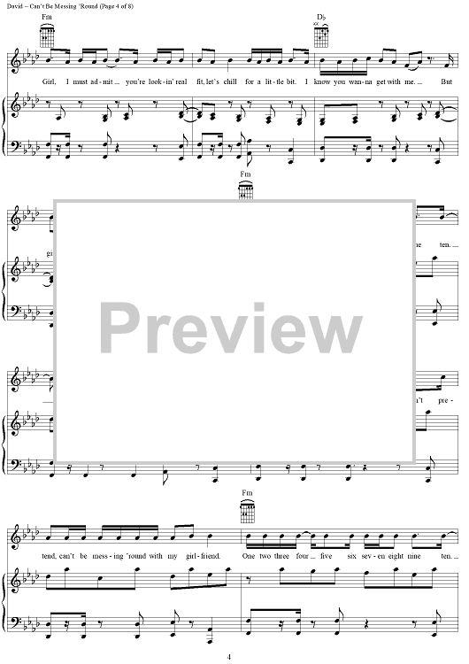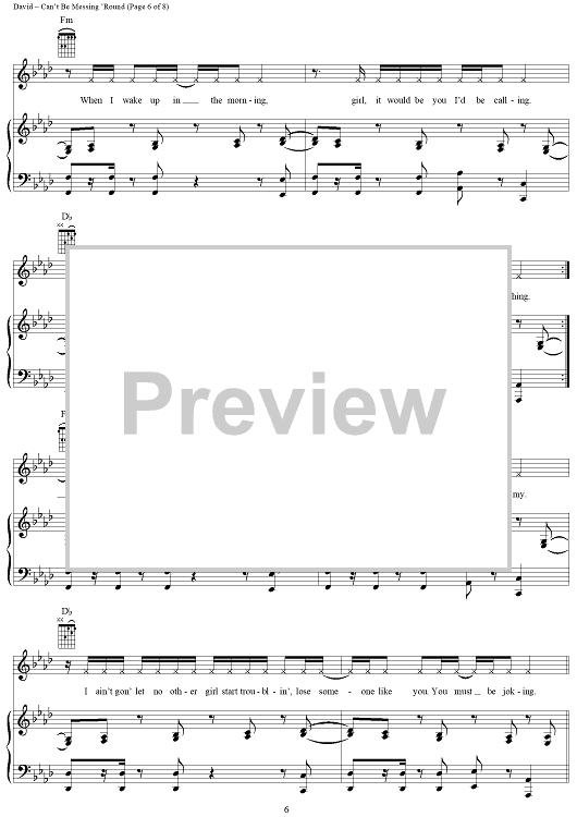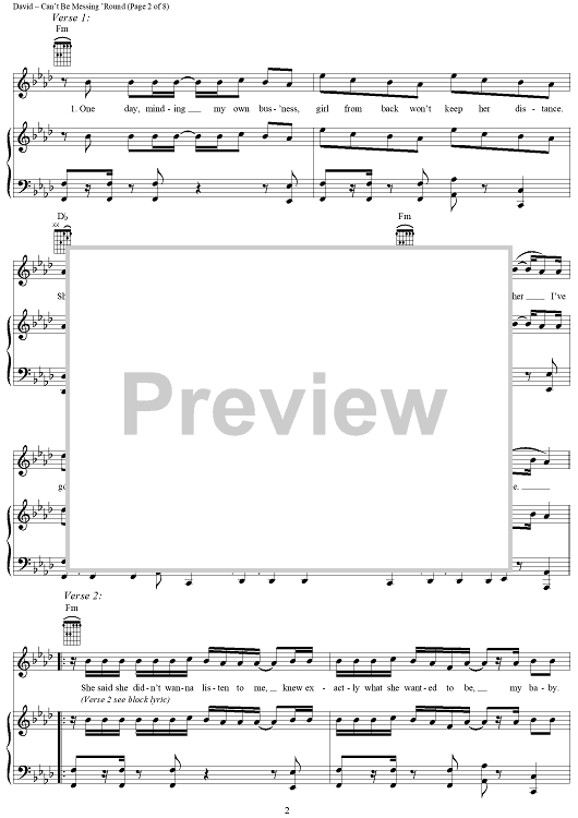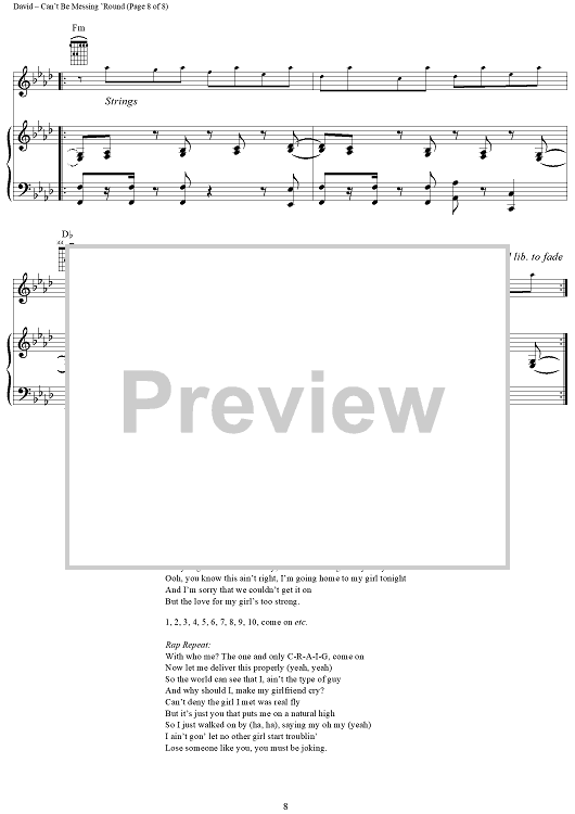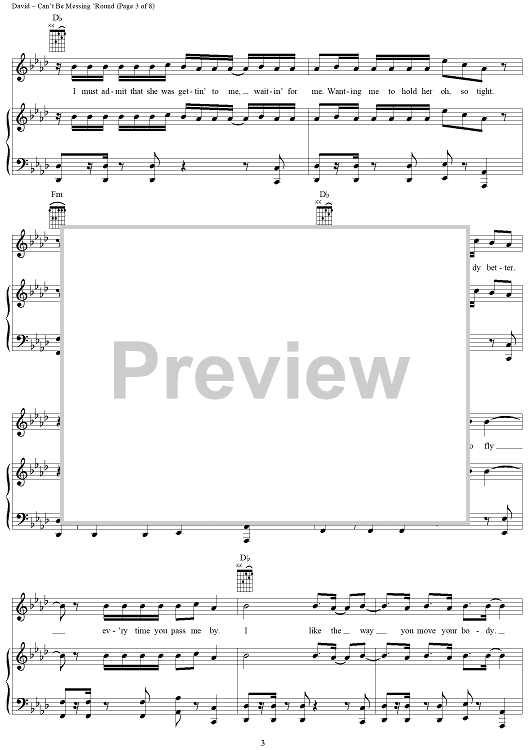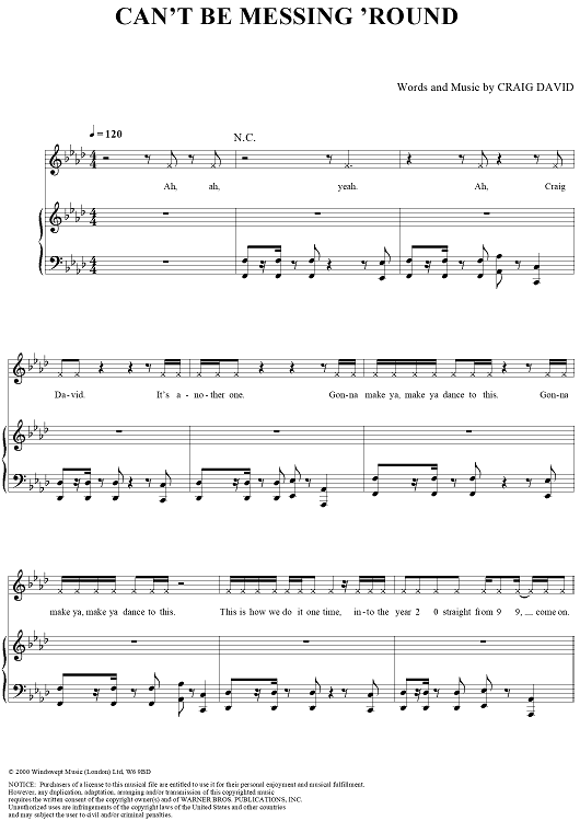 Digital Sheet Music for Can't Be Messing 'Round by Craig David scored for Piano/Vocal/Chords; id:284938