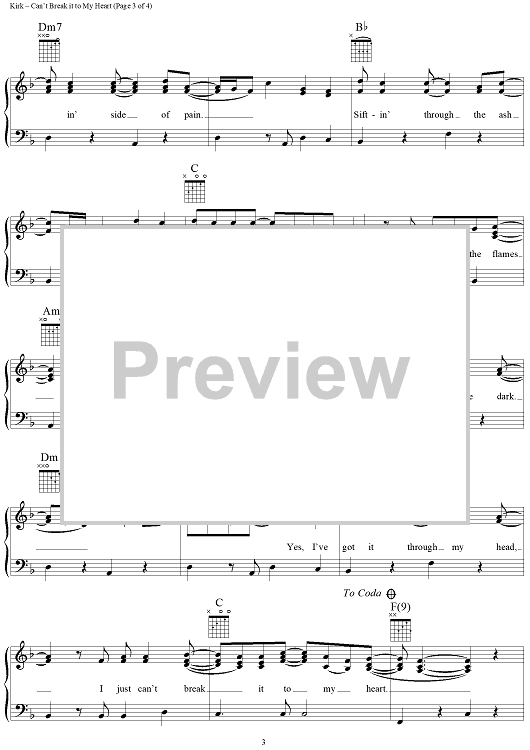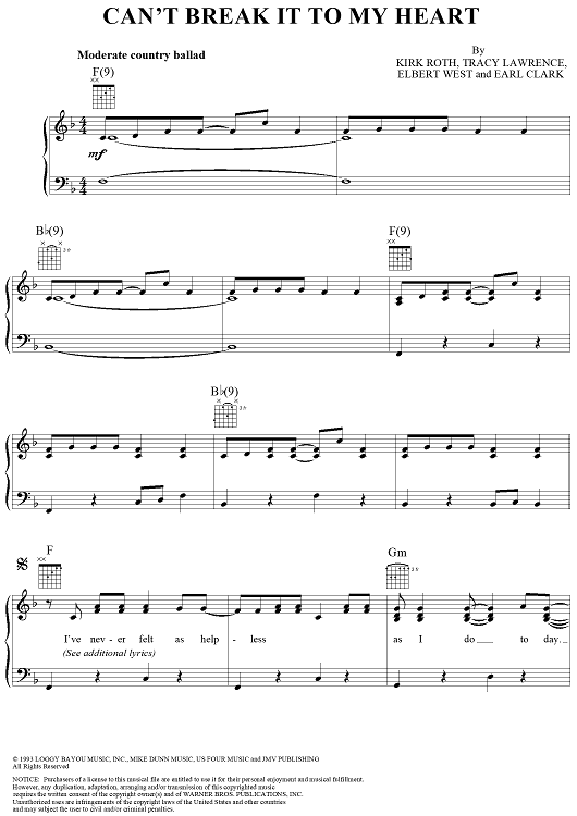 Digital Sheet Music for Can't Break it To My Heart by Tracy Lawrence, Kirk Roth, Elbert West, Earl Clark scored for Piano/Vocal/Chords; id:124352