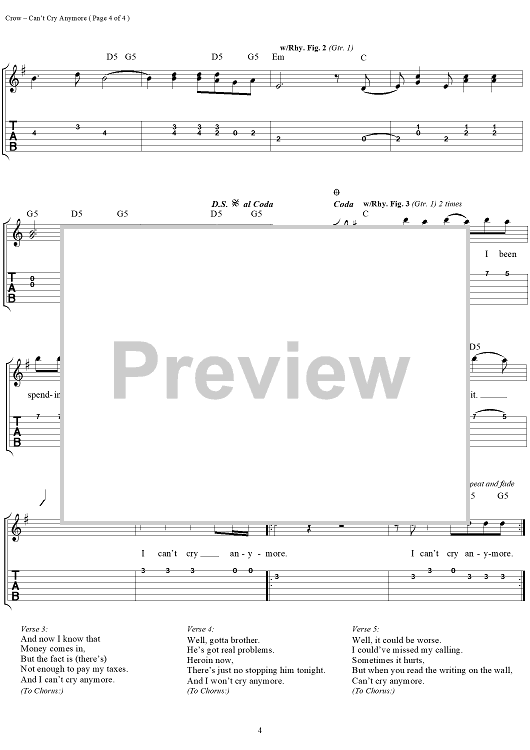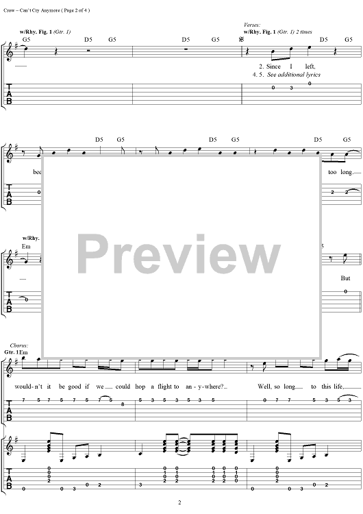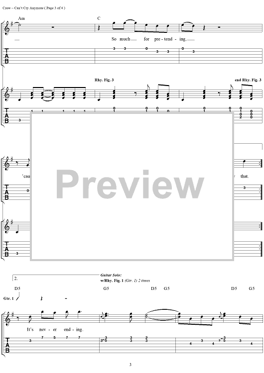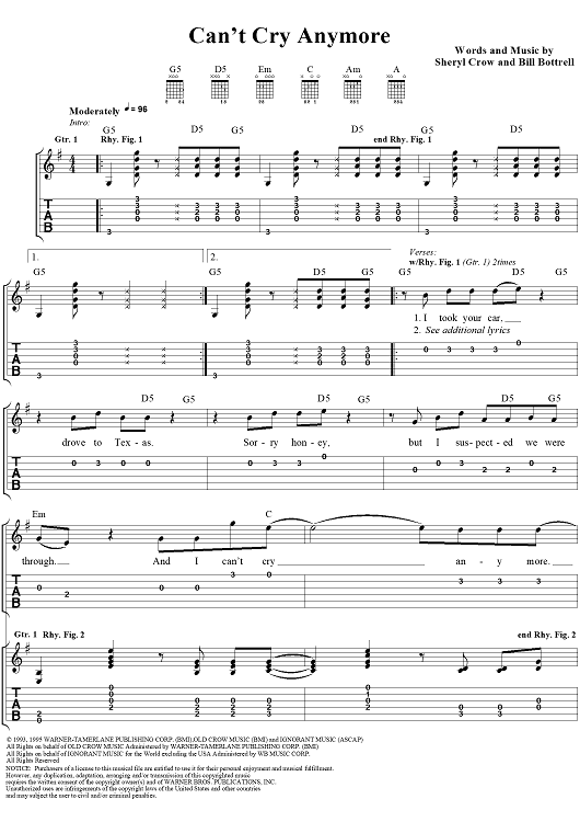 Digital Sheet Music for Can't Cry Anymore by Sheryl Crow, Bill Bottrell scored for Easy Guitar Tab/Vocal; id:113640
