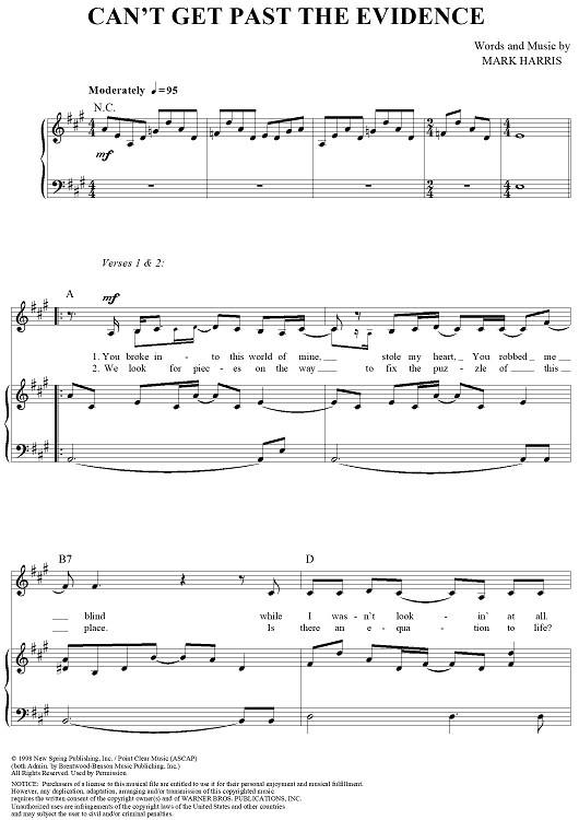 Digital Sheet Music for Can't Get Past the Evidence by Mark Harris, 4Him scored for Piano/Vocal/Chords; id:287109
