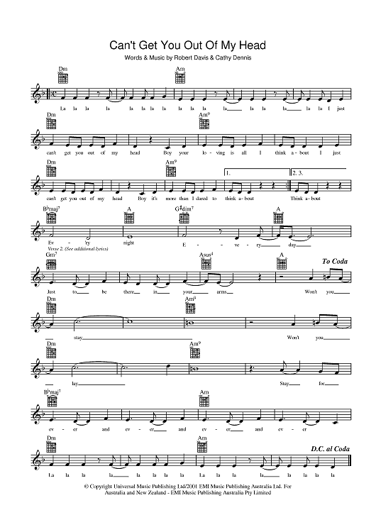 Digital Sheet Music for Can't Get You Out Of My Head by Cathy Dennis, Kylie Minogue, Rob Davis scored for Lead Sheet; id:401878