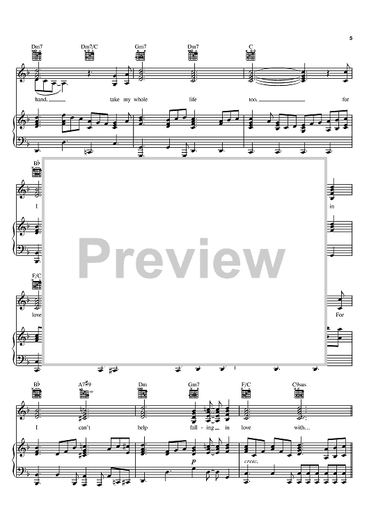 "Can't Help Falling In Love" Sheet Music by Elvis Presley