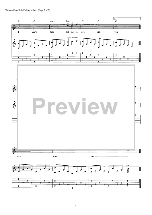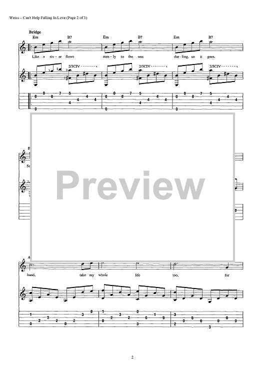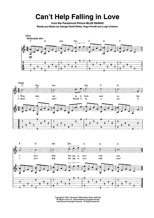 Digital Sheet Music for Can't Help Falling in Love by Luigi Creatore, George David Weiss, Hugo Peretti scored for Guitar Tab/Vocal/Chords; id:442856
