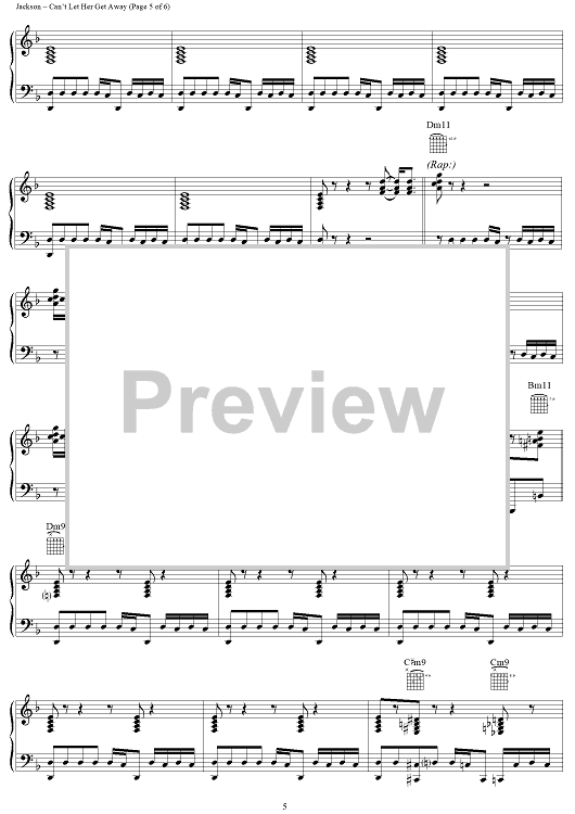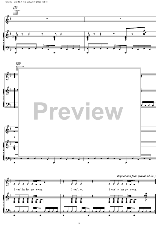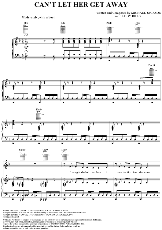 Digital Sheet Music for Can't Let Her Get Away by Michael Jackson, Teddy Riley scored for Piano/Vocal/Chords; id:120582