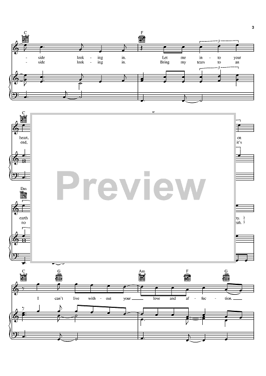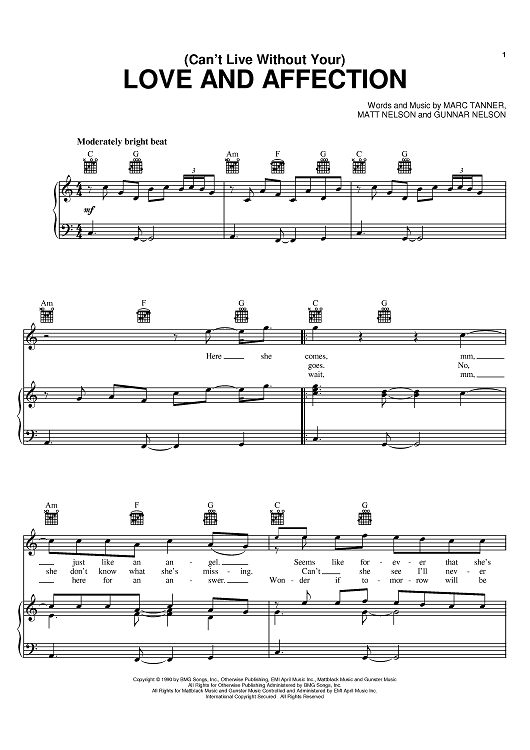 Digital Sheet Music for (Can't Live Without Your) Love And Affection by Nelson, Gunnar Nelson, Matt Nelson, Marc Tanner scored for Piano/Vocal/Chords; id:371818