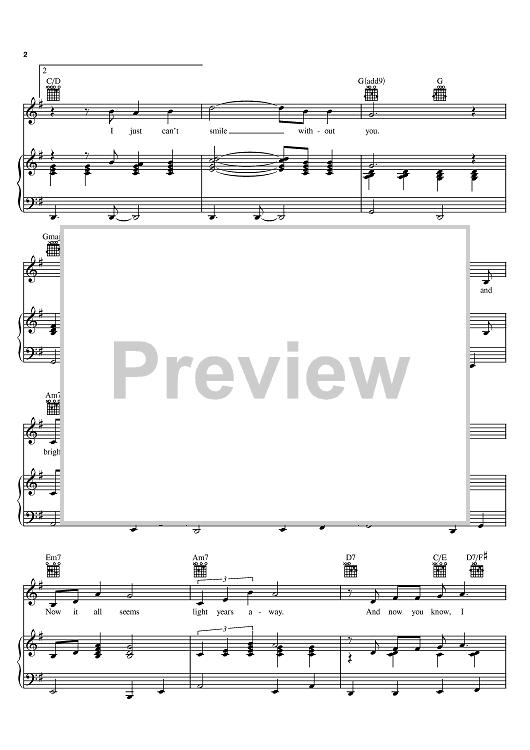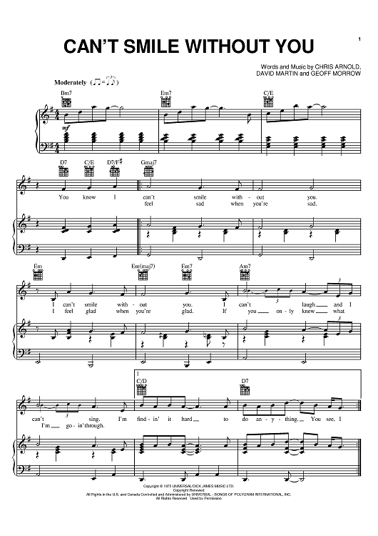 "Can't Smile Without You" Sheet Music by Barry Manilow