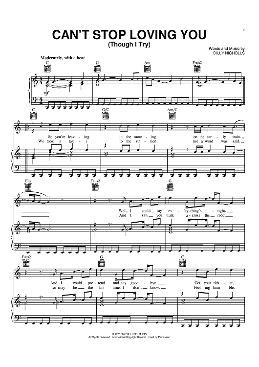 Digital Sheet Music for Can't Stop Loving You (Though I Try) by Leo Sayer, Billy Nicholls, Phil Collins, Keith Urban scored for Piano/Vocal/Chords; id:370373
