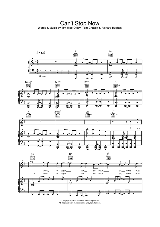 Digital Sheet Music for Can't Stop Now by Keane scored for Piano/Vocal/Chords; id:378457