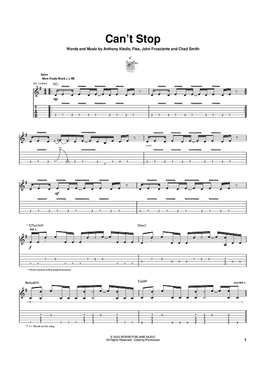 Digital Sheet Music for Can't Stop by Flea, John Frusciante, Anthony Kiedis, Red Hot Chili Peppers scored for Guitar Tab; id:370300