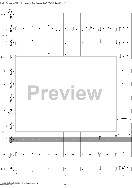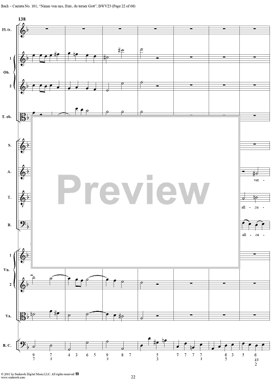 Digital Sheet Music for Cantata No. 101: Nimm von uns, Herr, du treuer Gott, BWV101 by Johann Sebastian Bach scored for Full Score; id:255222