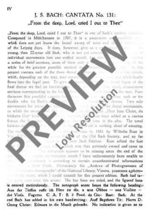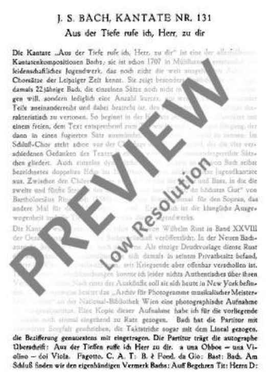 "Cantata No. 131 (Psalm 130) - Full Score" Sheet Music by Johann Sebastian Bach