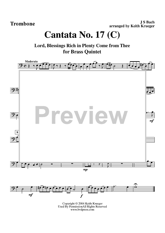 "Cantata No. 17 - Trombone" Sheet Music by Johann Sebastian Bach