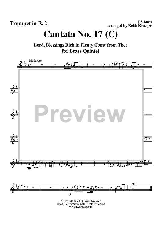 "Cantata No. 17 - Trumpet 2" Sheet Music by Johann Sebastian Bach
