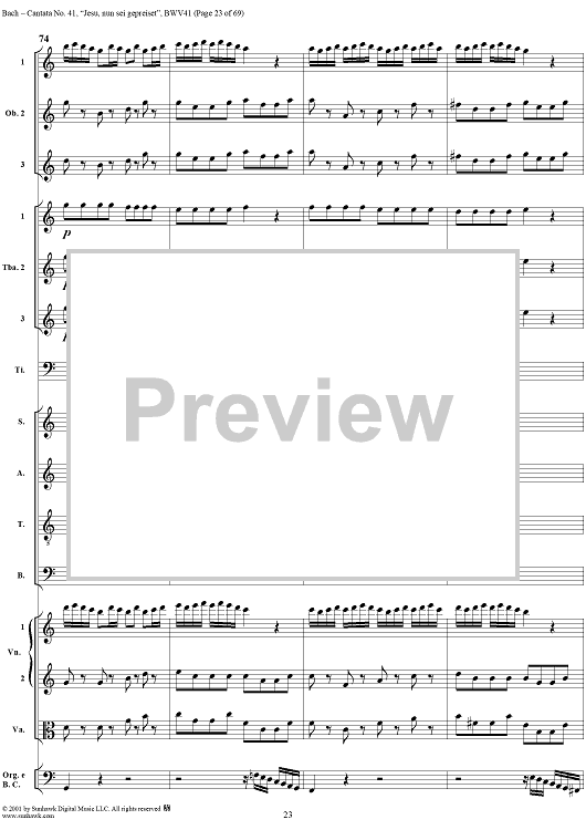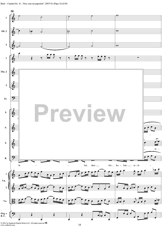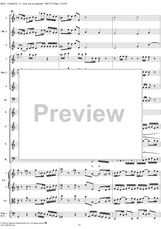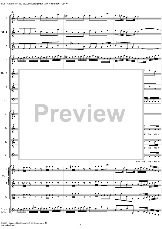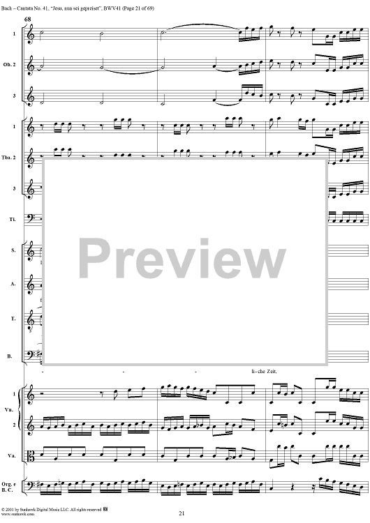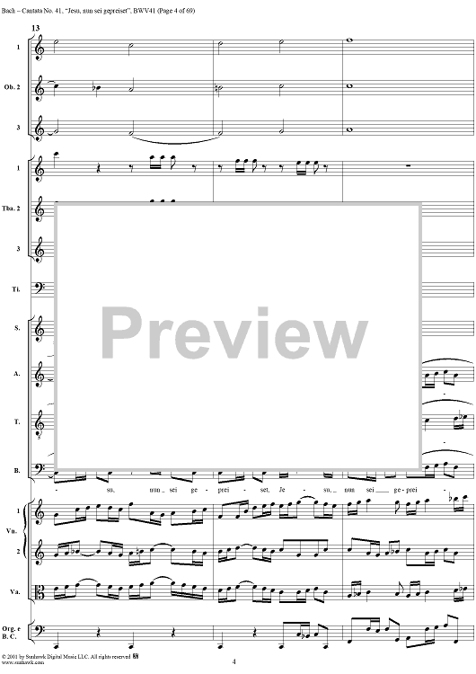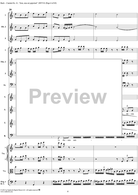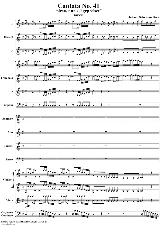 Digital Sheet Music for Cantata No. 41: Jesu, nun sei gepreiset, BWV41 by Johann Sebastian Bach scored for Full Score; id:253707
