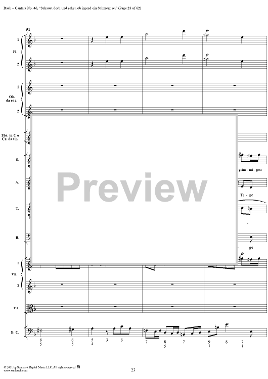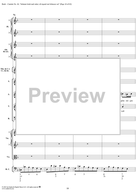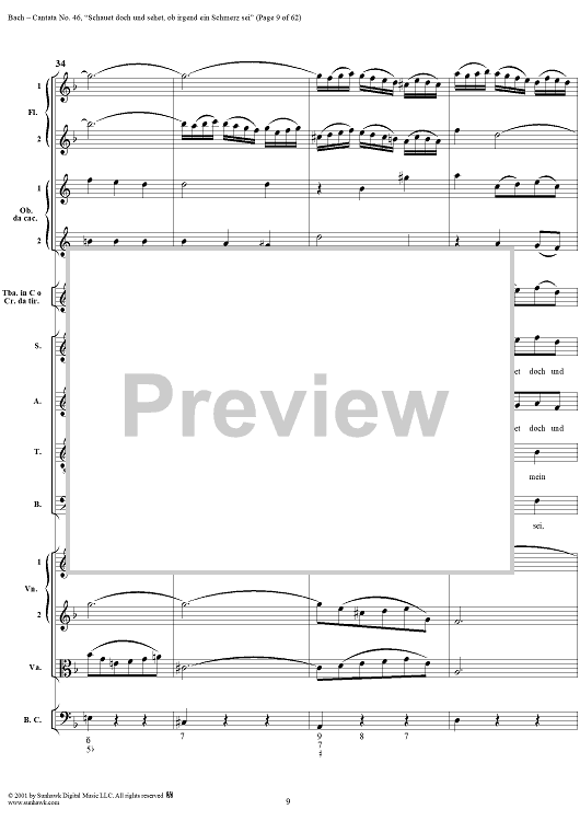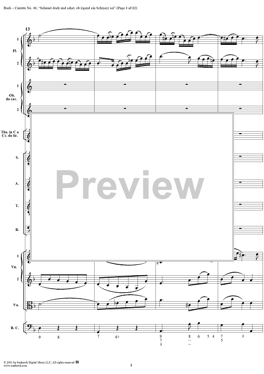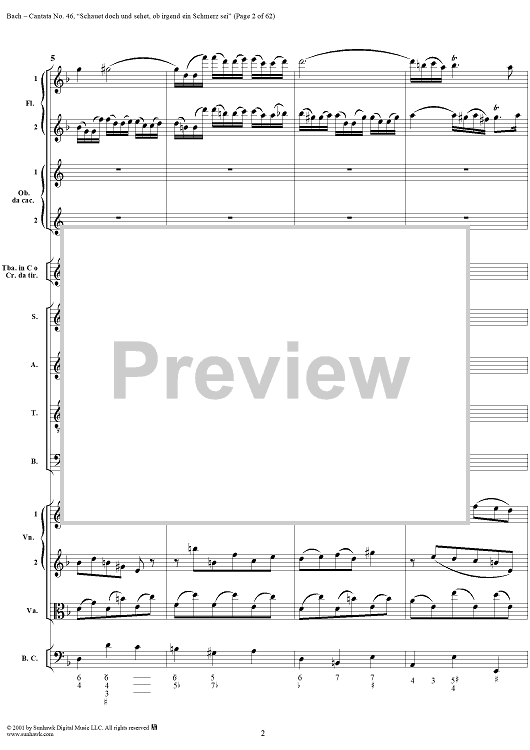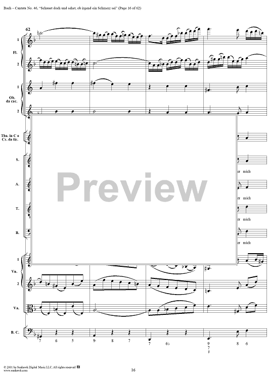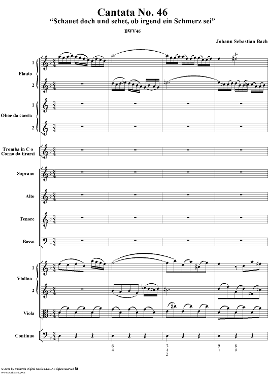 Digital Sheet Music for Cantata No. 46: Schauet doch und sehet, ob irgend ein Schmerz sei, BWV46 by Johann Sebastian Bach scored for Full Score; id:253672
