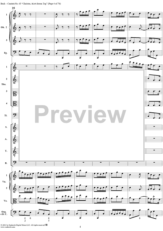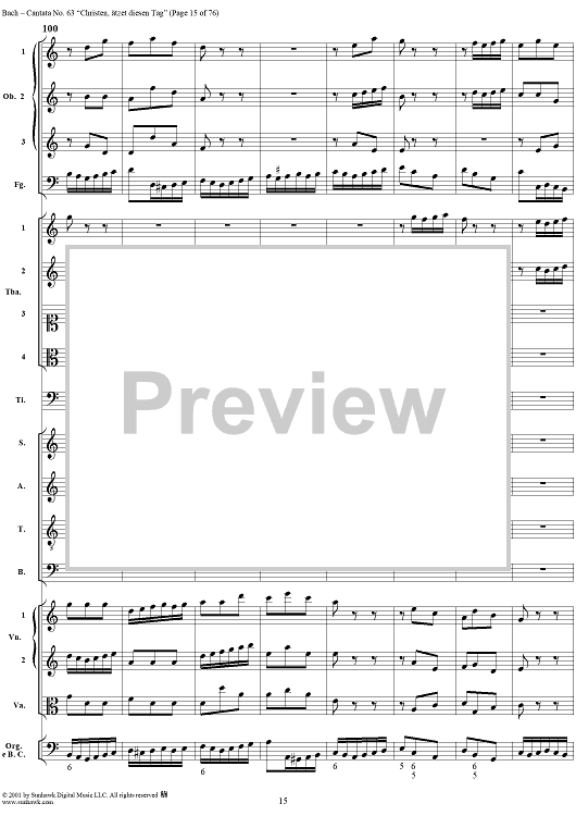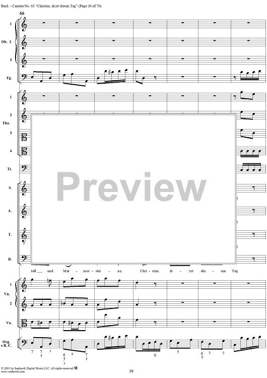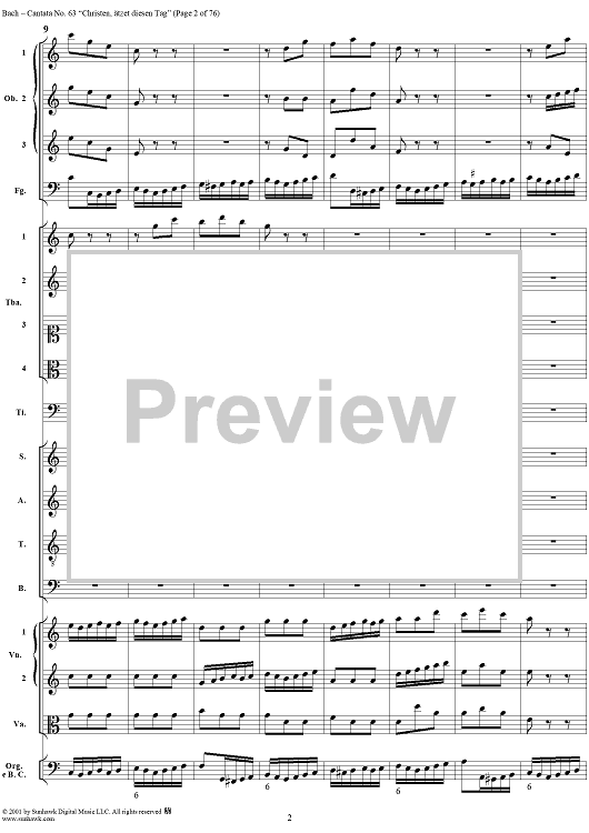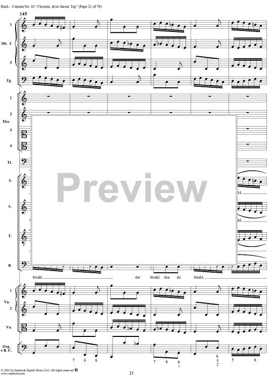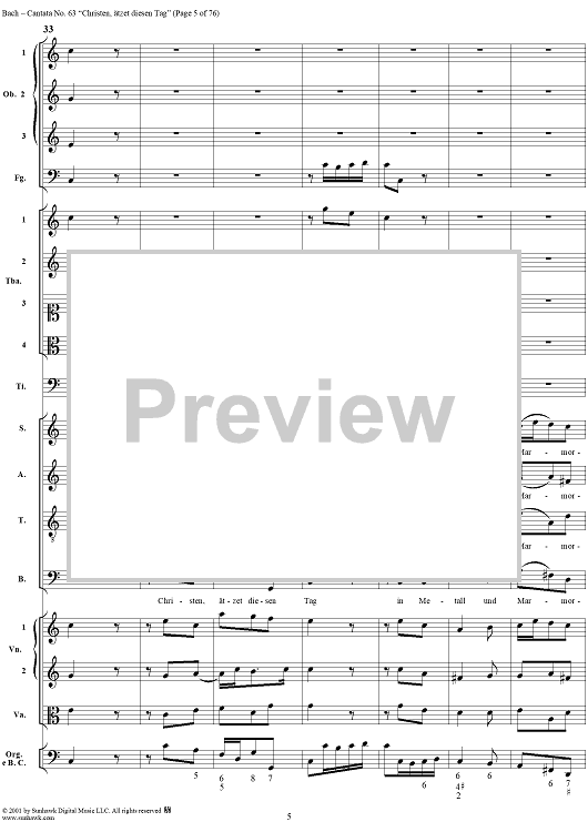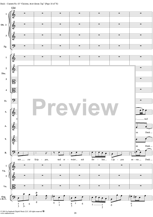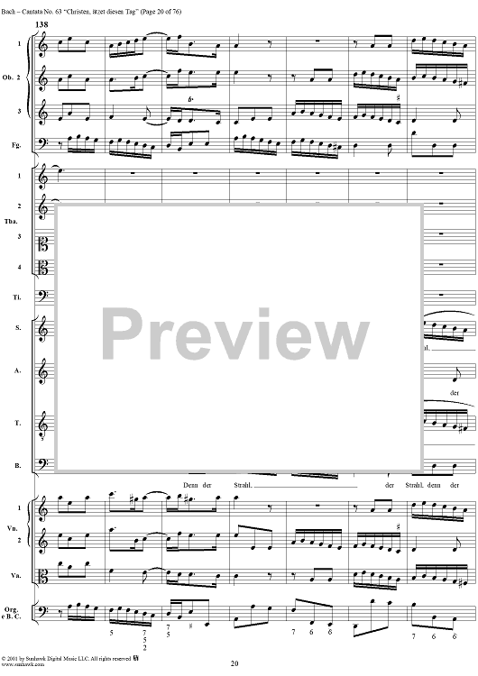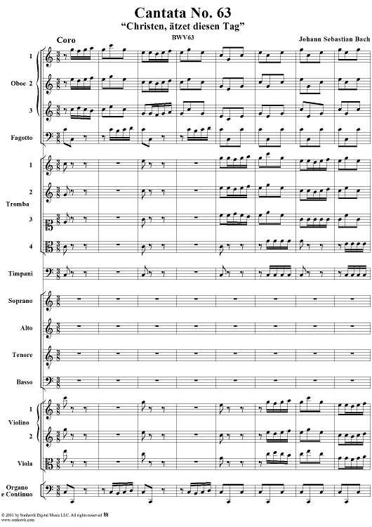 Digital Sheet Music for Cantata No. 63: Christen, ätzet diesen Tag, BWV63 by Johann Sebastian Bach scored for Full Score; id:265518