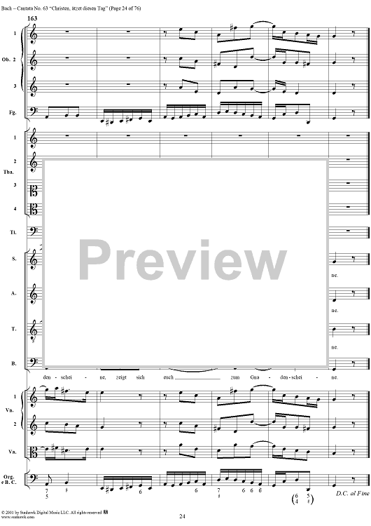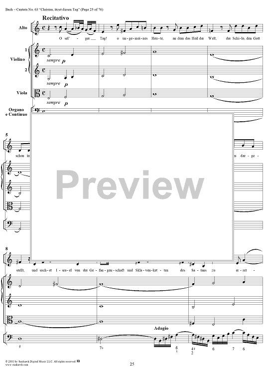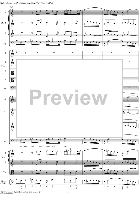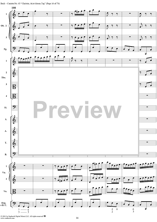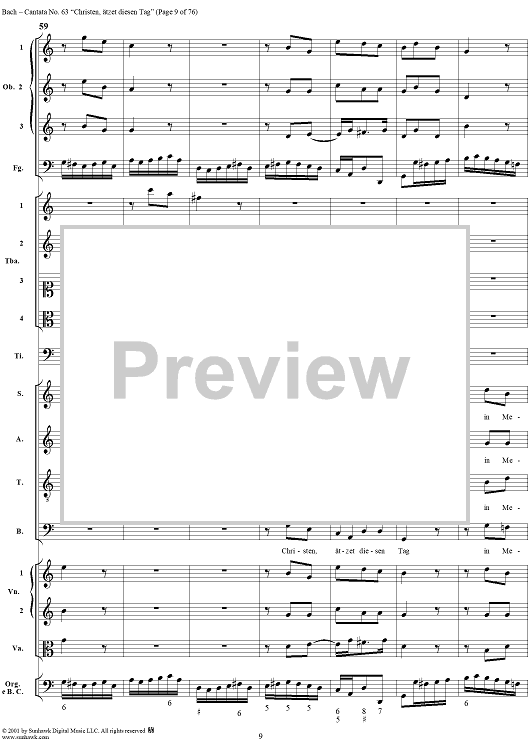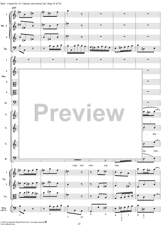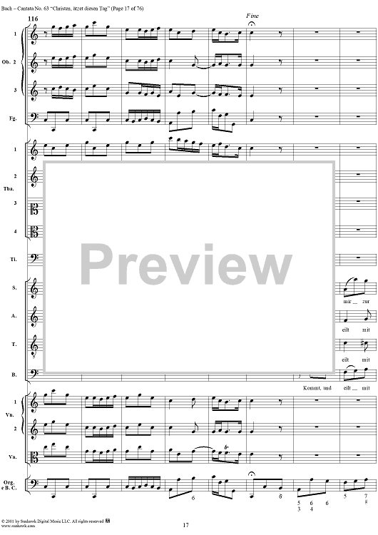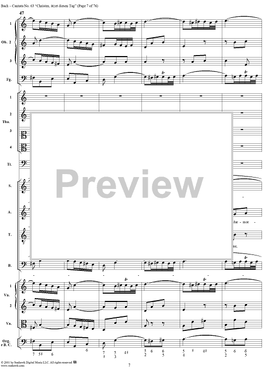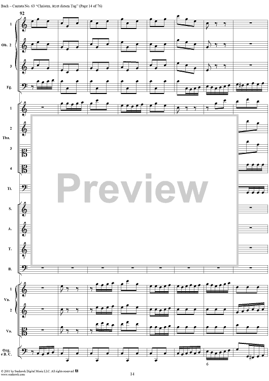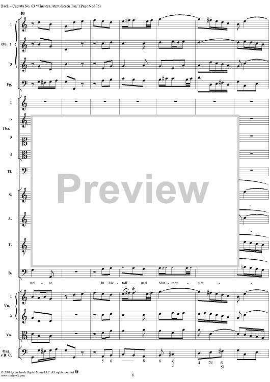 Digital Sheet Music for Cantata No. 63: Christen, ätzet diesen Tag, BWV63 by Johann Sebastian Bach scored for Full Score; id:265518