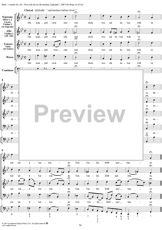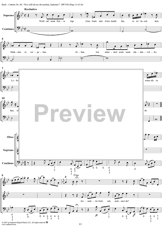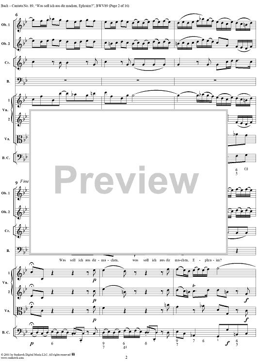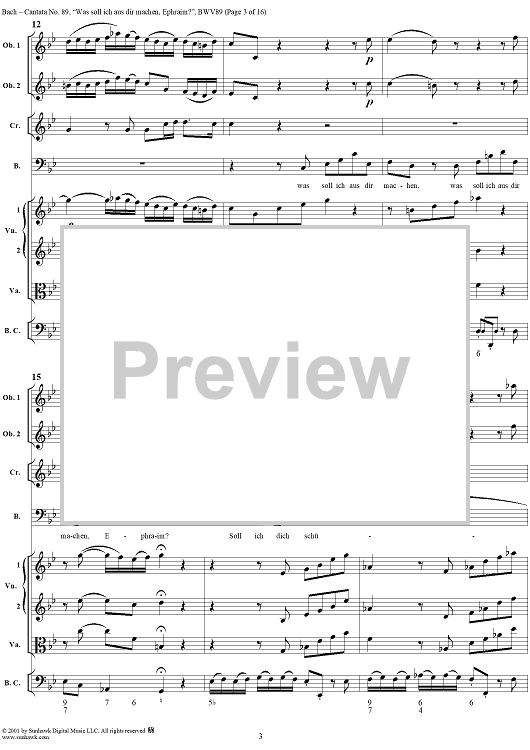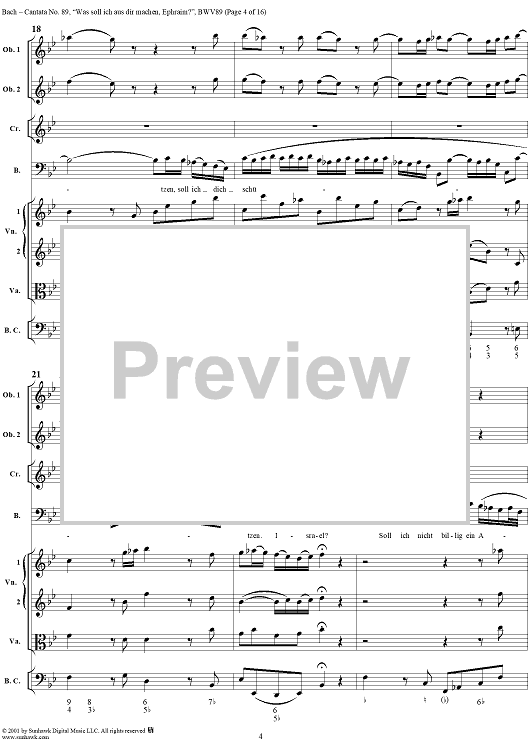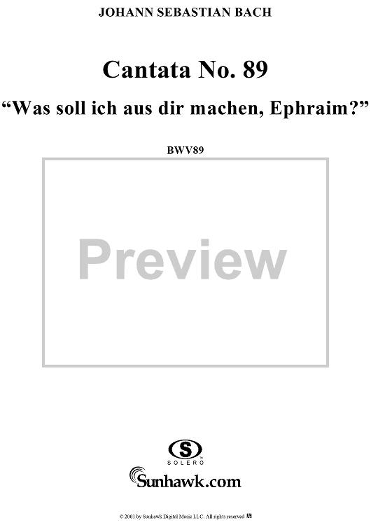 Digital Sheet Music for Cantata No. 89: Was soll ich aus dir machen, Ephraim?, BWV89 by Johann Sebastian Bach scored for Full Score; id:251646