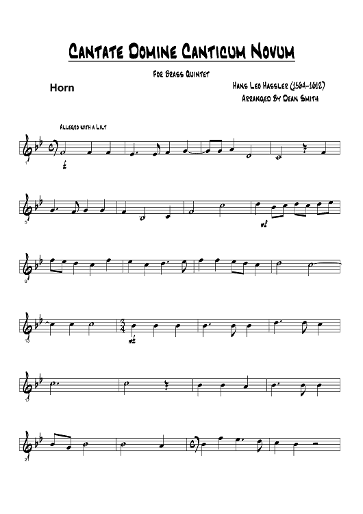 Digital Sheet Music for Cantate Domine Canticum Novum - Horn by , Hans Leo Hassler, Dean W. Smith scored for Brass Quintet; id:320235