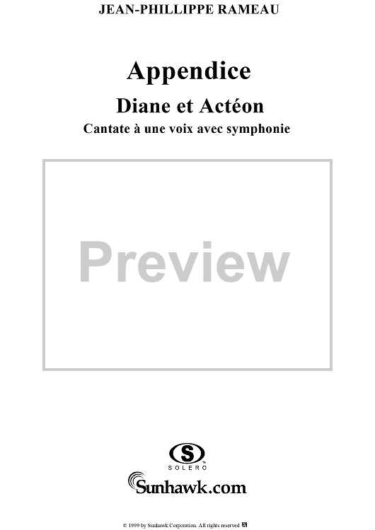 Digital Sheet Music for Cantates, Diane et Actéon, Appendice by Jean-Philippe Rameau scored for Voice/Piano/Continuo; id:255133
