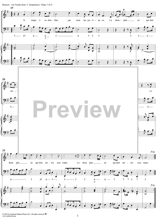 Digital Sheet Music for Cantates, L'Impatience, Recitatif (2) by Jean-Philippe Rameau scored for Voice/Piano/Continuo; id:255144