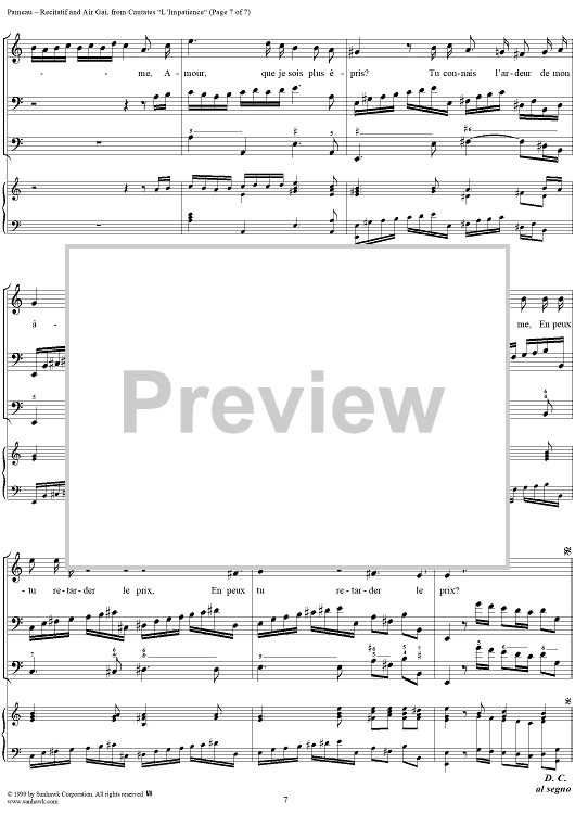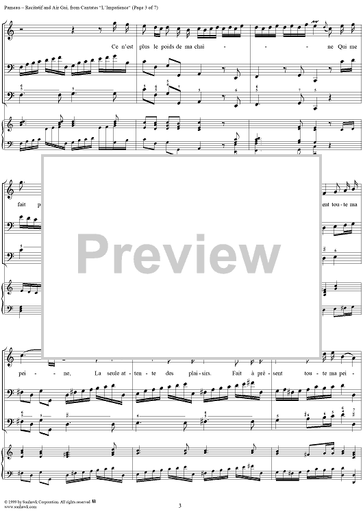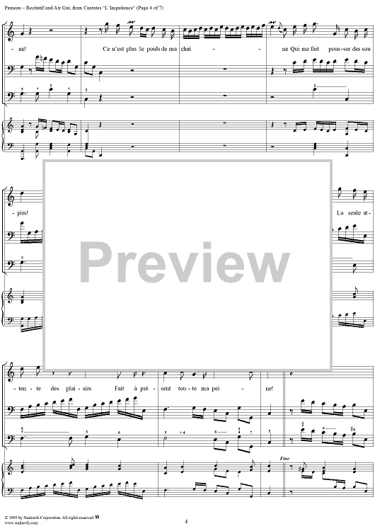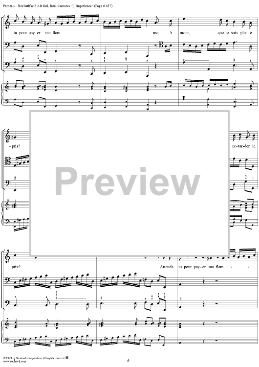 Digital Sheet Music for Cantates, L'Impatience, Recitatif and Air Gai by Jean-Philippe Rameau scored for Voice/Piano; id:255141
