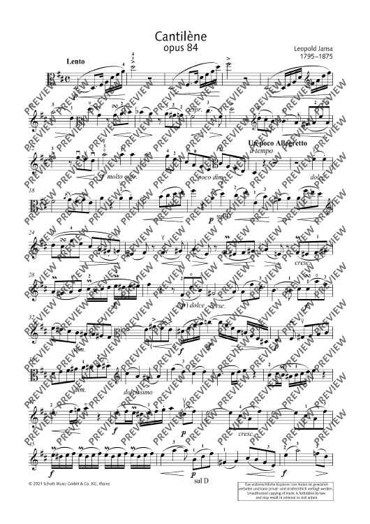 Digital Sheet Music for Cantilène in D major by Leopold Jansa scored for Viola And Piano; id:496333