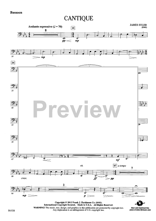 Digital Sheet Music for Cantique - Bassoon by James Syler scored for Concert Band; id:440666