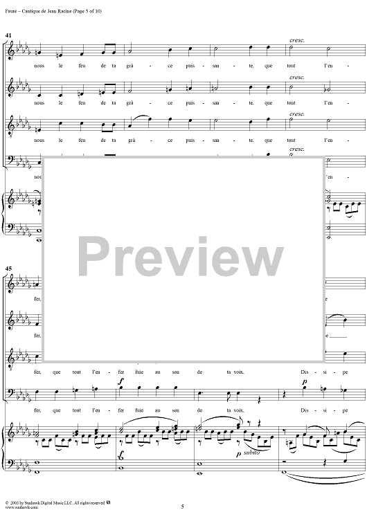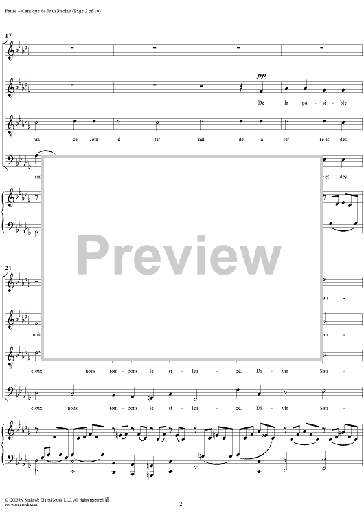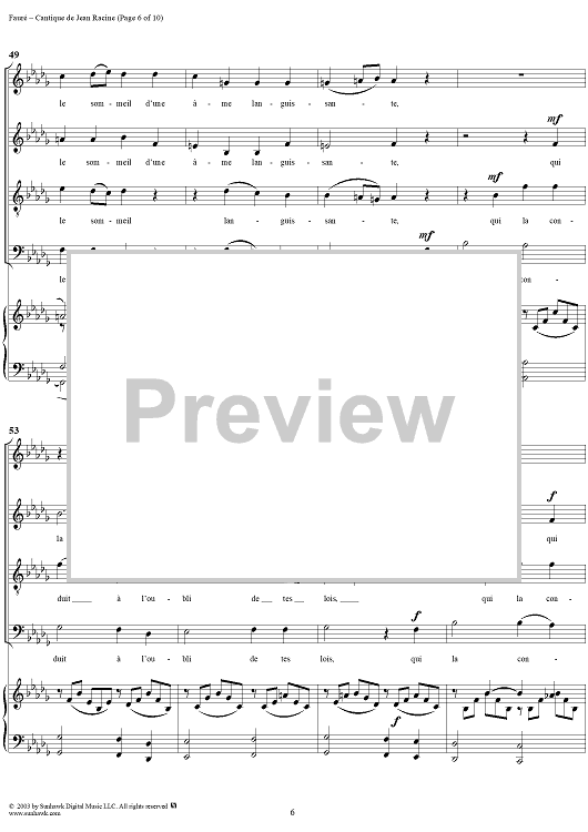 Digital Sheet Music for Cantique De Jean Racine, Op. 11 by Gabriel Fauré scored for SATB Chorus/Organ; id:294402