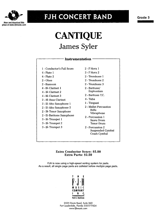 Digital Sheet Music for Cantique - Score Cover by James Syler scored for Concert Band; id:440662