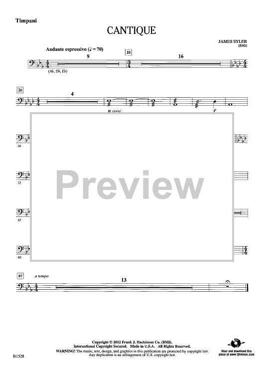 Digital Sheet Music for Cantique - Timpani by James Syler scored for Concert Band; id:440686