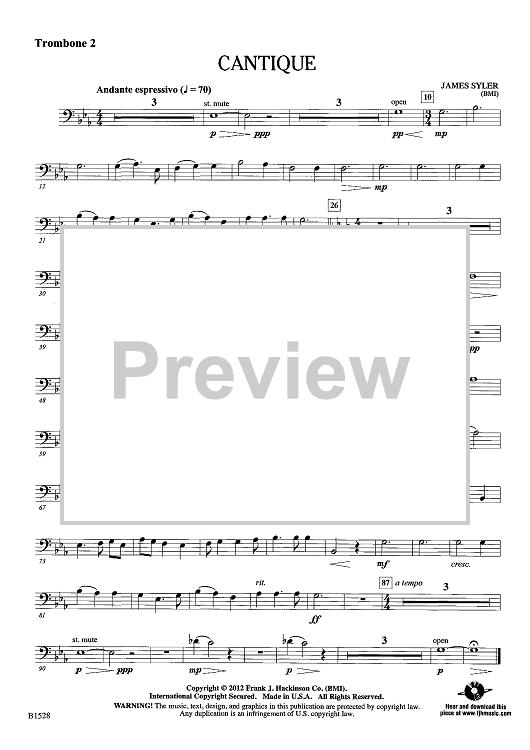 "Cantique - Trombone 2" Sheet Music by James Syler