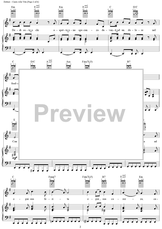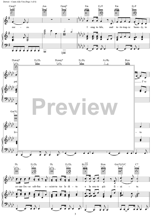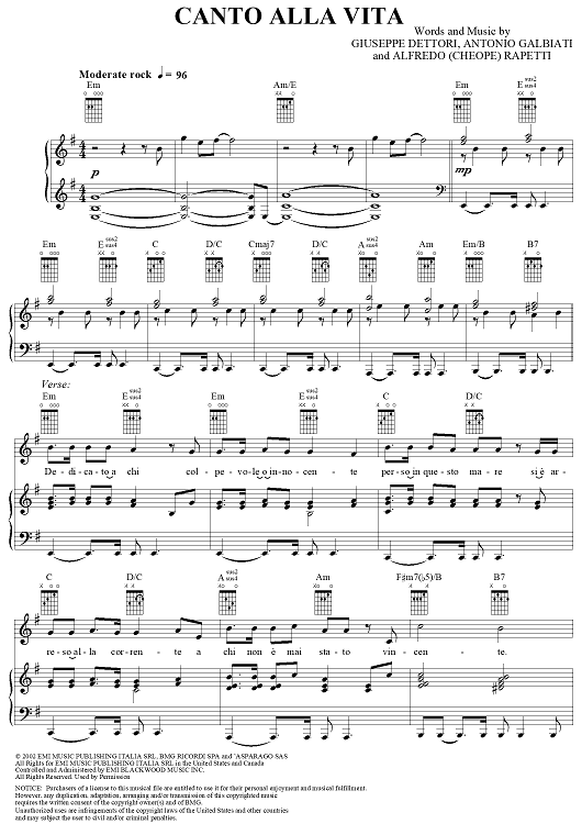 Digital Sheet Music for Canto Alla Vita by Josh Groban, Guido Morra, Antonio Galbiati, Alfredo (Cheope) Rapetti, Giuseppe Dettori scored for Piano/Vocal/Chords; id:293544