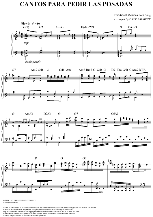 Digital Sheet Music for Cantos Para Pedir Las Posadas by Dave Brubeck, Traditional Mexican Folk Song scored for Piano Solo; id:311557