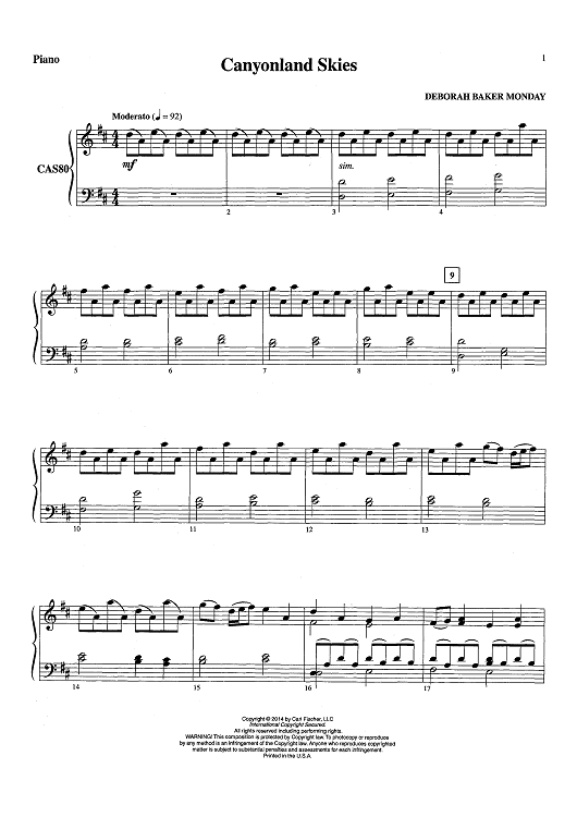 "Canyonland Skies - Piano" Sheet Music by Deborah Baker Monday