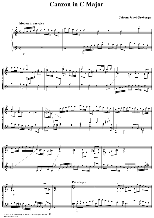 Digital Sheet Music for Canzon in C Major by Johann Jakob Froberger scored for Piano Solo; id:294800