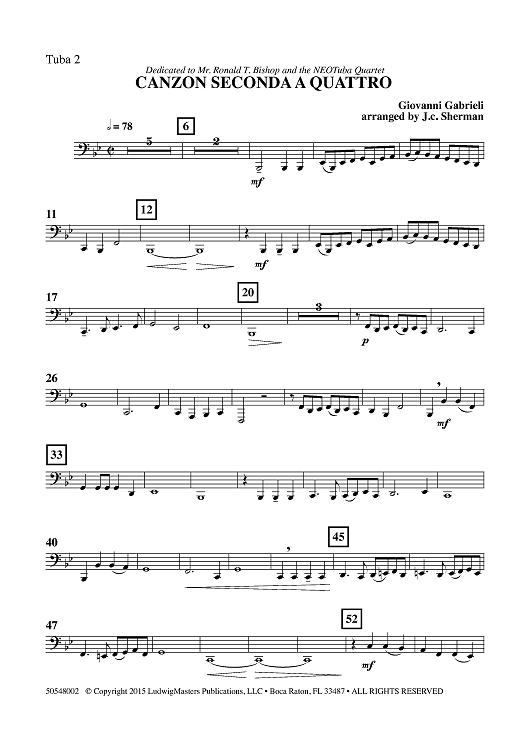 Digital Sheet Music for Canzon Seconda a Quattro for Tuba/Euphonium Quartet - Tuba 2 by , Giovanni Gabrieli, J. C. Sherman scored for Tuba/Euphonium Quartet; id:462494