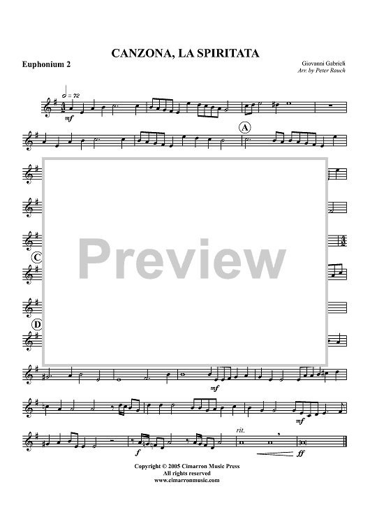 "Canzona, La Spiritata - Euphonium 2 BC/TC" Sheet Music by Giovanni Gabrieli