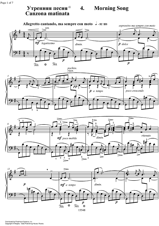 Digital Sheet Music for Canzona Matinata - Forgotten Melodies 2, Op.39 No. 4 - Piano by , Nikolay Karlovich Medtner scored for Piano Solo; id:331975
