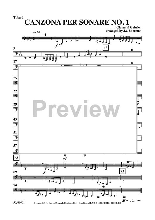 Digital Sheet Music for Canzona per sonare No. 1 - for Tuba/Euphonium Quartet - Tuba 2 by Giovanni Gabrieli, J. C. Sherman scored for Tuba/Euphonium Quartet; id:458907