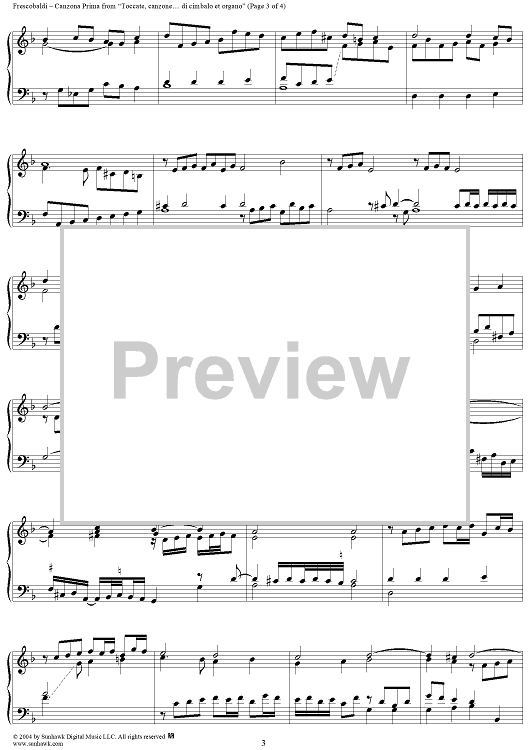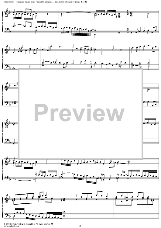 Digital Sheet Music for Canzona Prima, No. 13 from "Toccate, canzone ... di cimbalo et organo", Vol. II by Girolamo Frescobaldi scored for Harpsichord or Organ; id:295953