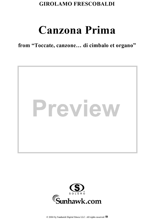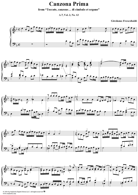 "Canzona Prima, No. 13 from "Toccate, canzone ... di cimbalo et organo", Vol. II" Sheet Music by Girolamo Frescobaldi